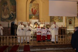 • Osoby prowadzące mszę stoją przed ołtarzem