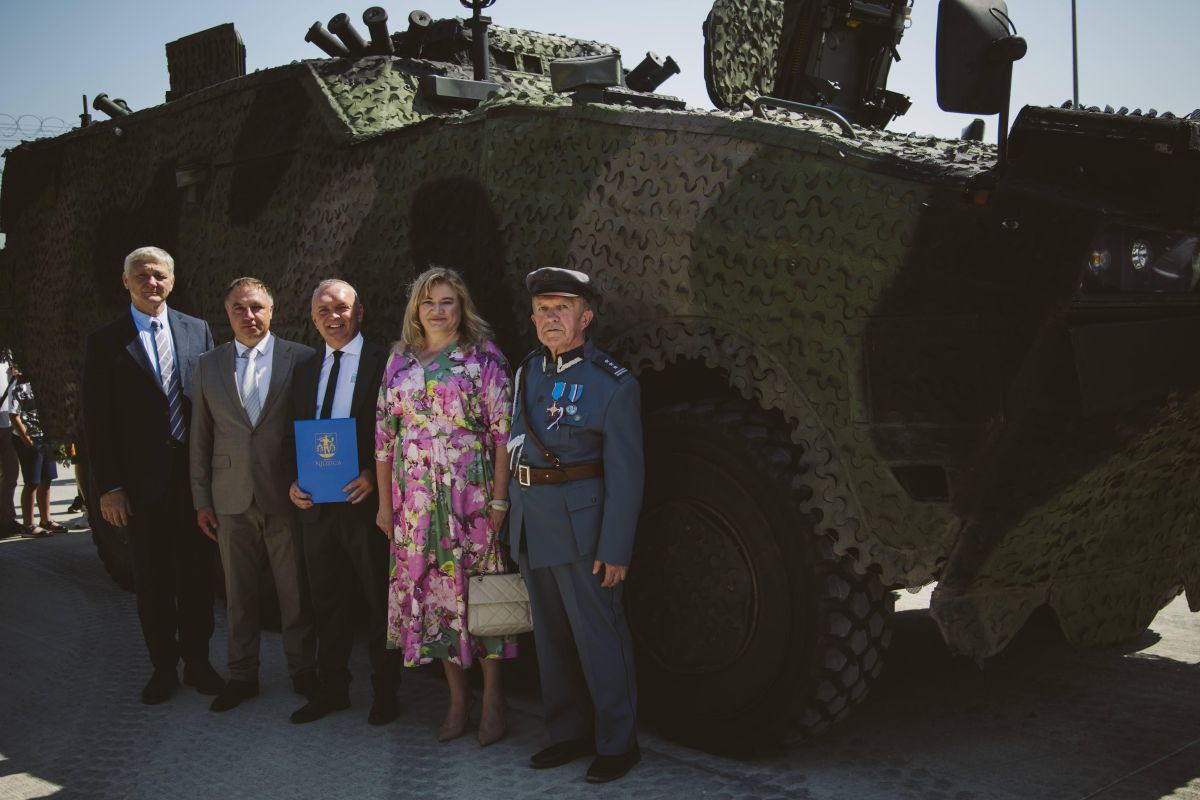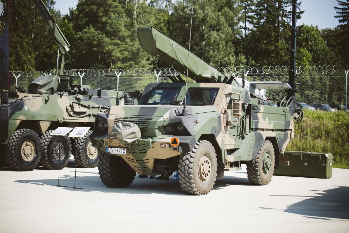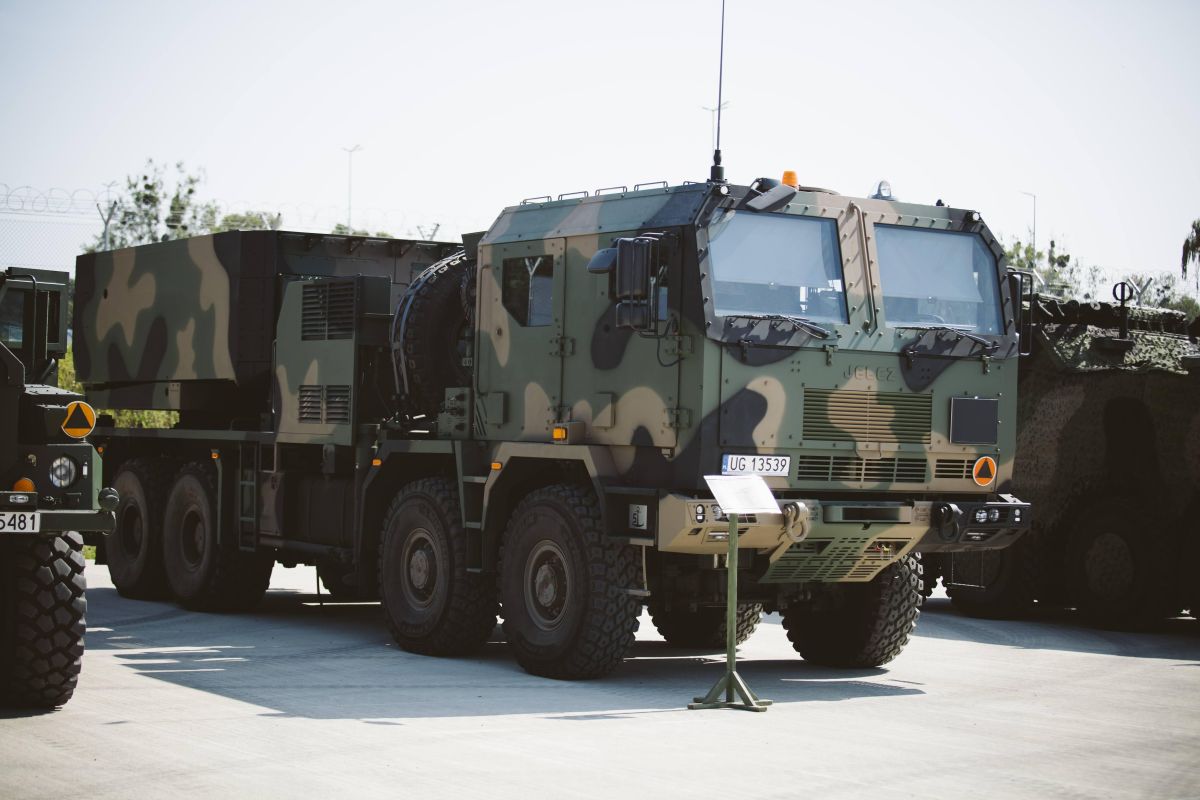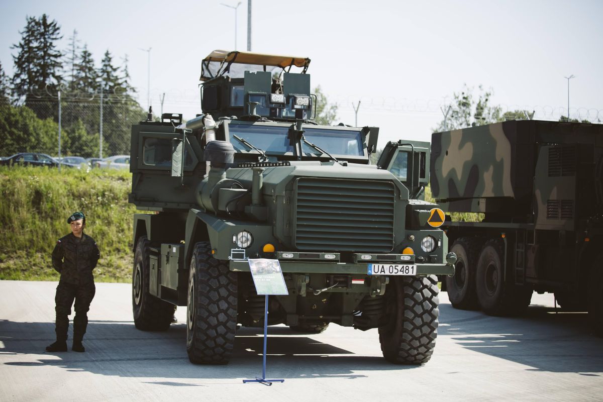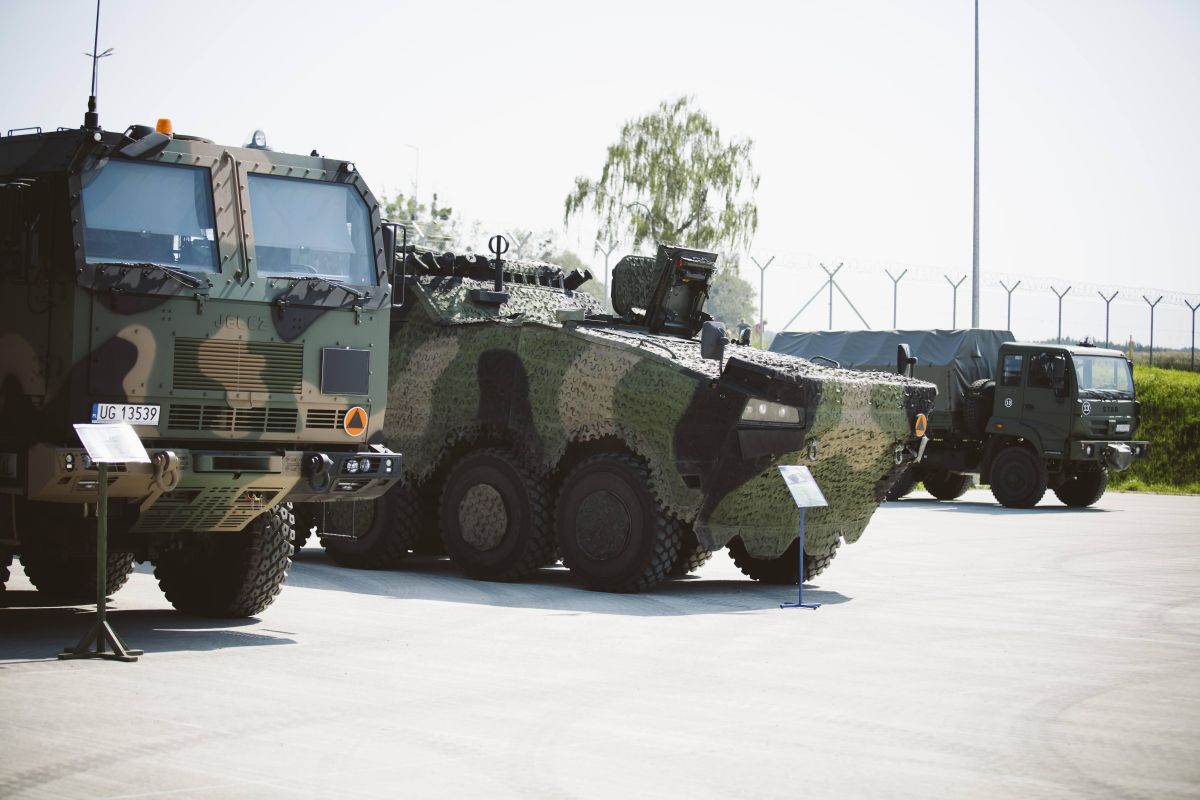 • Sprzęt wojskowy stoi na placu