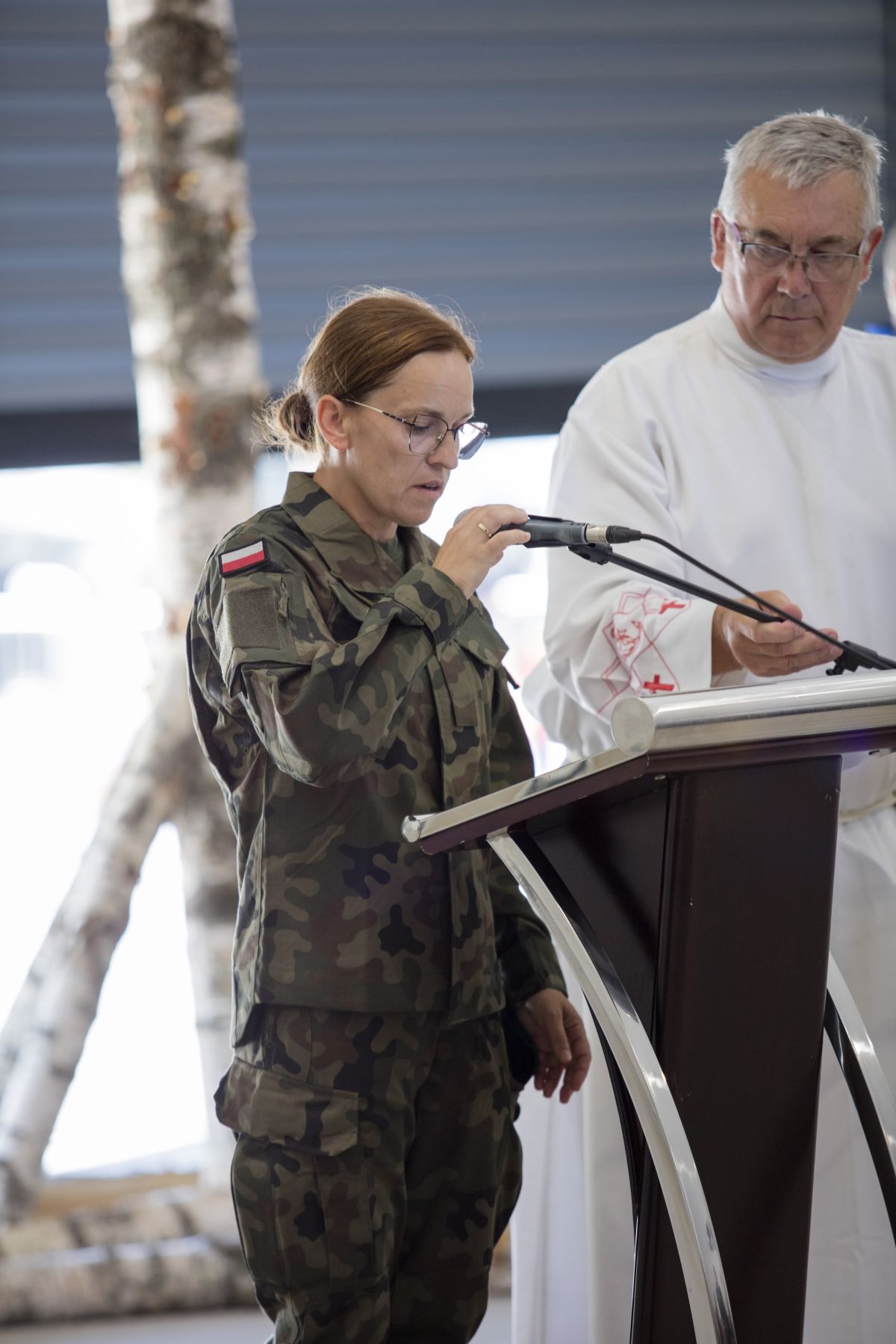 • Żołnierka stoi podczas mszy