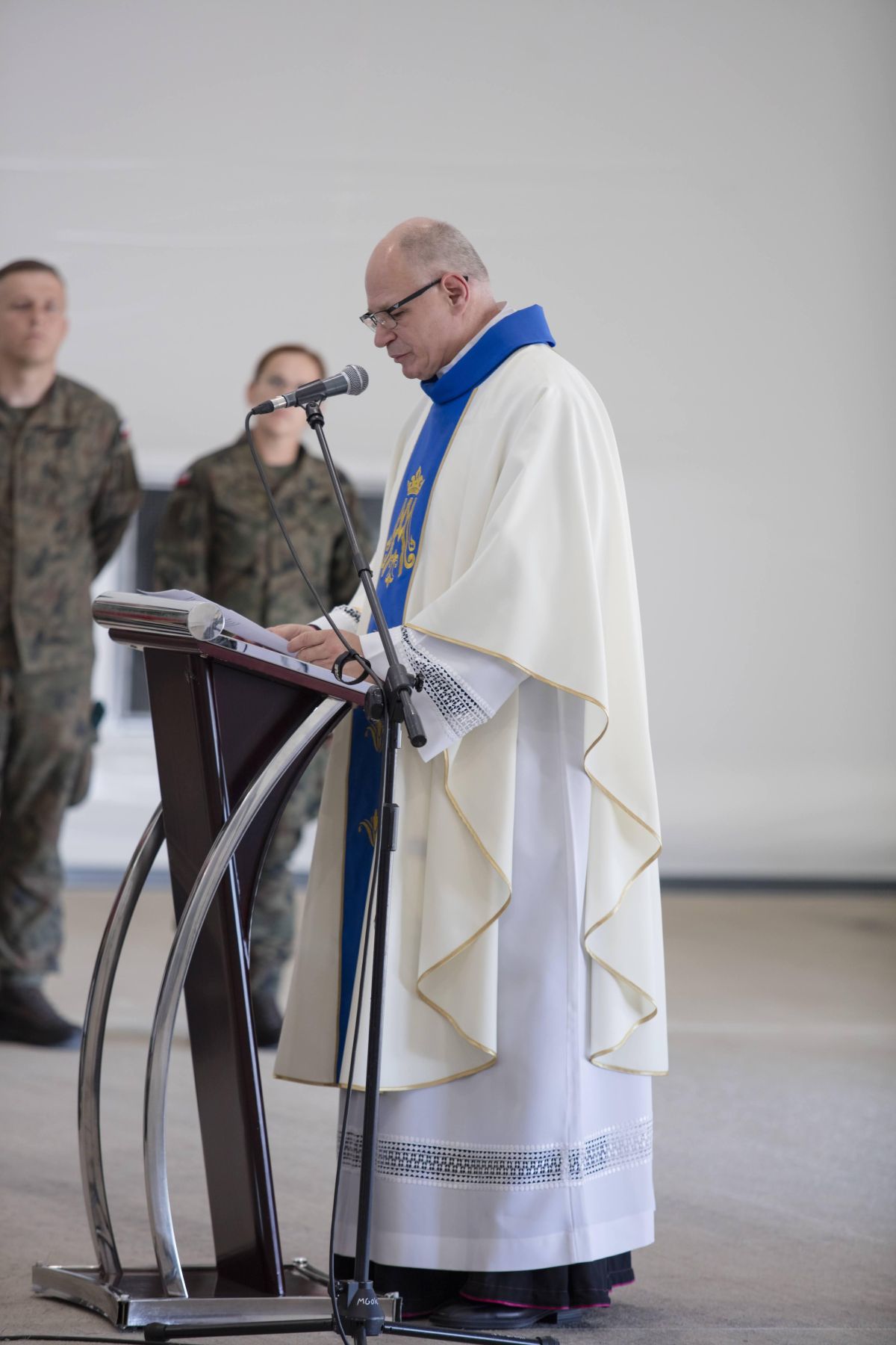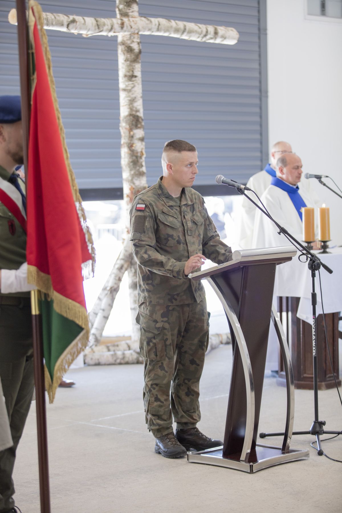 • Żołnierz stoi podczas mszy