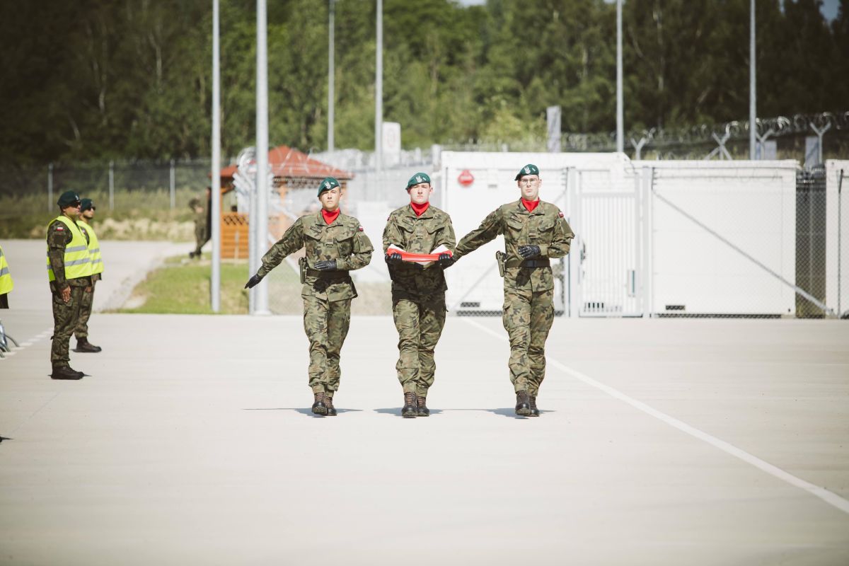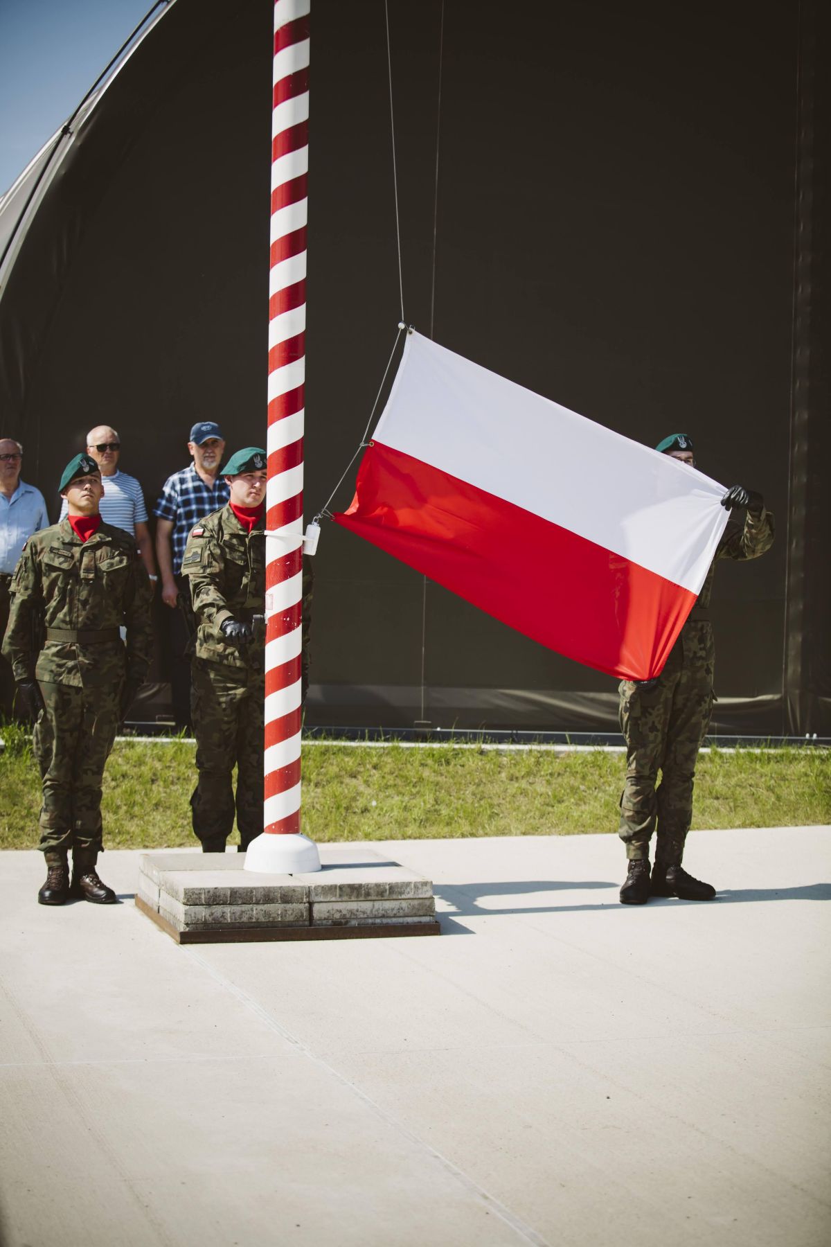 • Żołnierze wciągają flagę na maszt