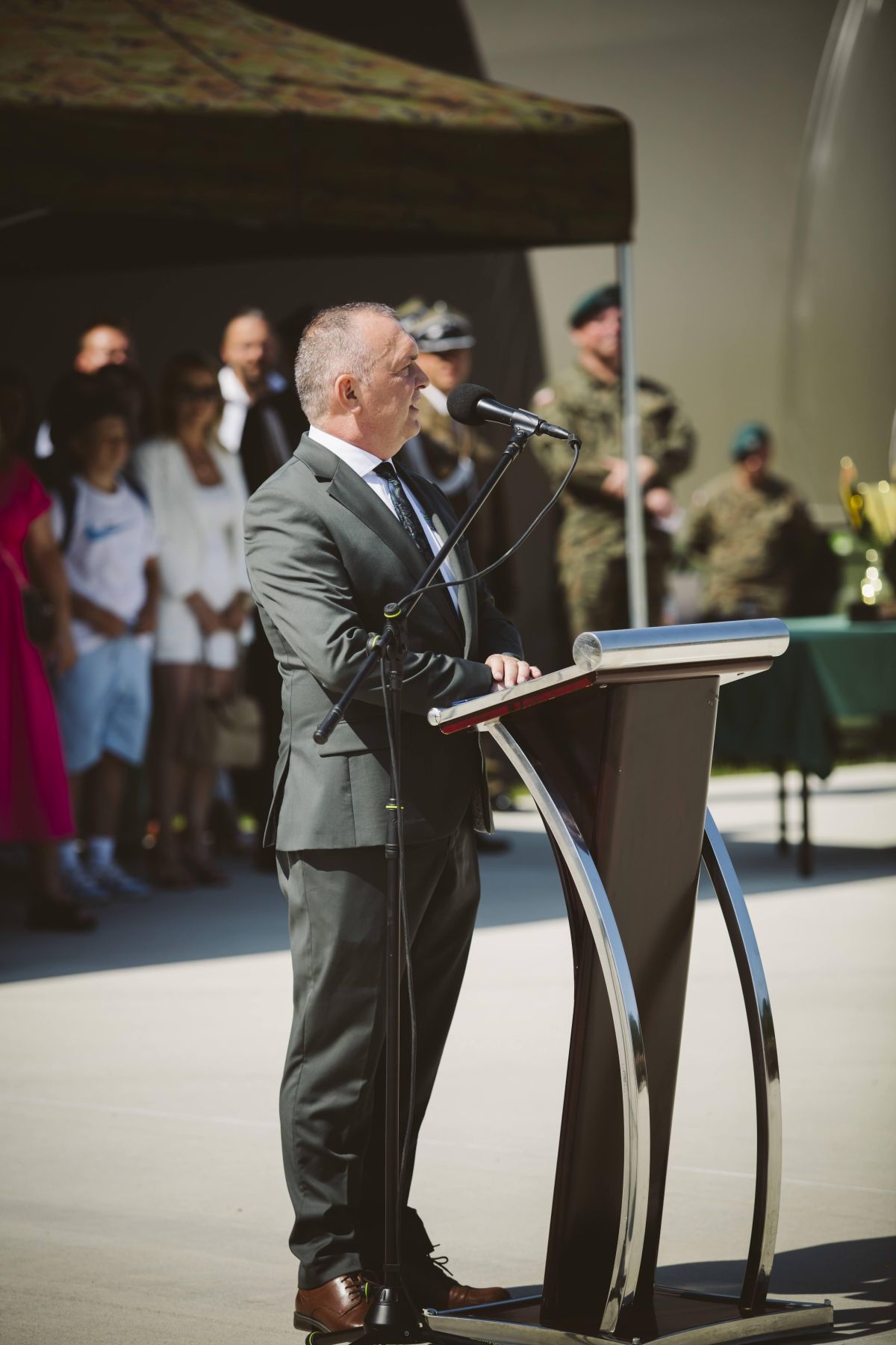 • Oficer jednostki wojskowej przemawia