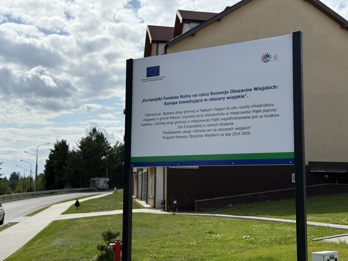 Gmina Nidzica realizowała inwestycję pn. „Budowa drogi gminnej w Piątkach”, na podstawie umowy nr 00276-65151-UM1400413/22 z dnia 11 czerwca 2024 r., Aneks nr 1 z dnia 10.03.2025 r. w ramach Programu Rozwoju Obszarów Wiejskich na lata 2014-2020,